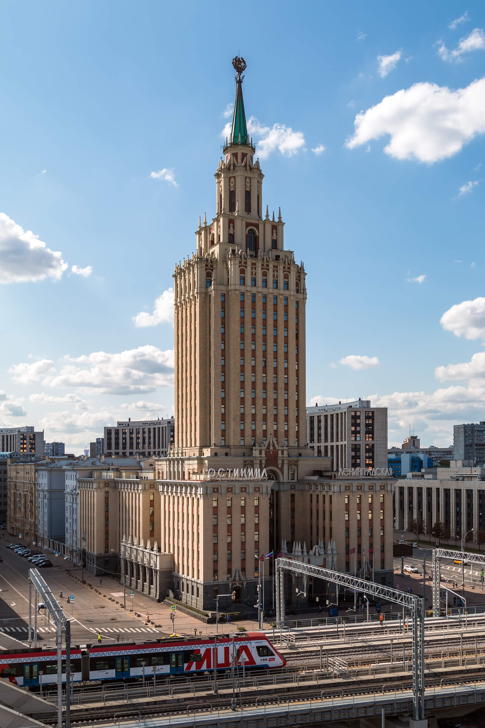 Гостиница «Ленинградская», разместившаяся в самой невысокой из сталинских высоток (136 метров), в советское время пользовалась репутацией лучшей в Москве. Здание возвышается на площади Трех вокзалов.