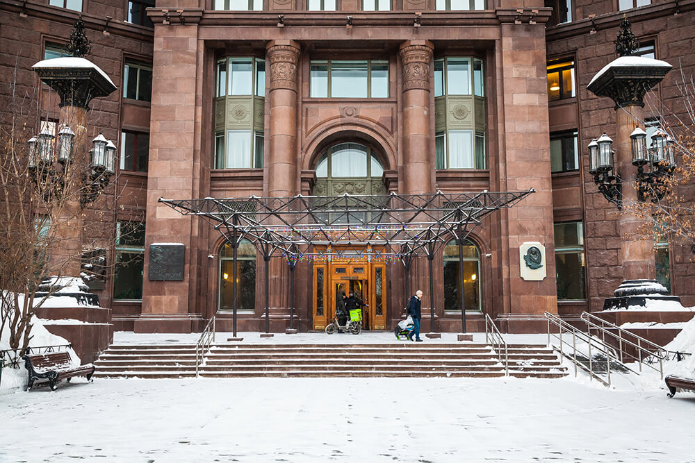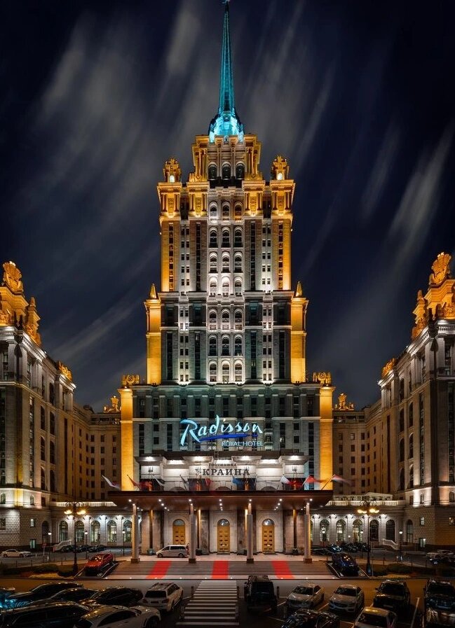 Отель «Украина», распахнувший свои двери в 1957 году в сталинской высотке, занял второе место по размеру среди подобных сооружений. Здание считается одним из самых богато украшенных — это подтверждается не только изысканным внутренним убранством и декоративными элементами, но и разнообразием бронзовых изваяний, а также полотнами прославленных мастеров кисти. В наши дни в этом здании продолжает функционировать гостиница, известная теперь как Radisson Collection Hotel Moscow.
