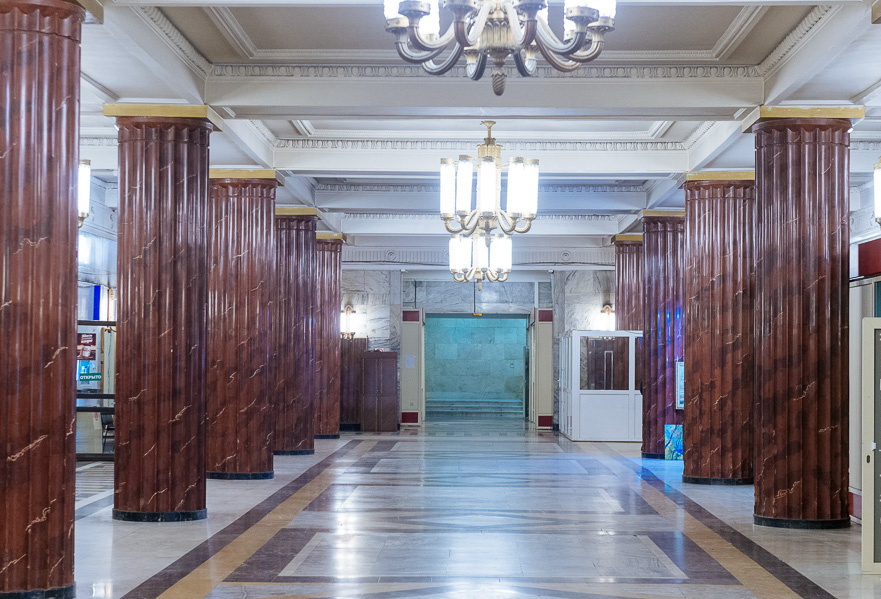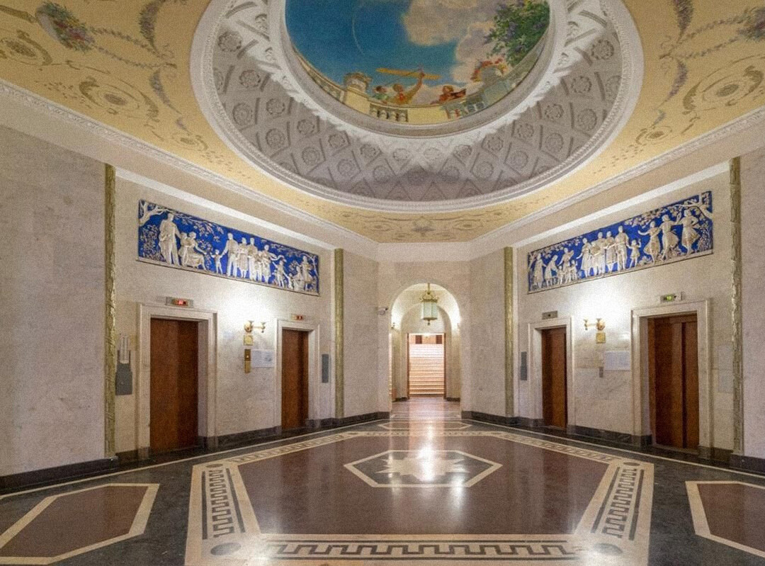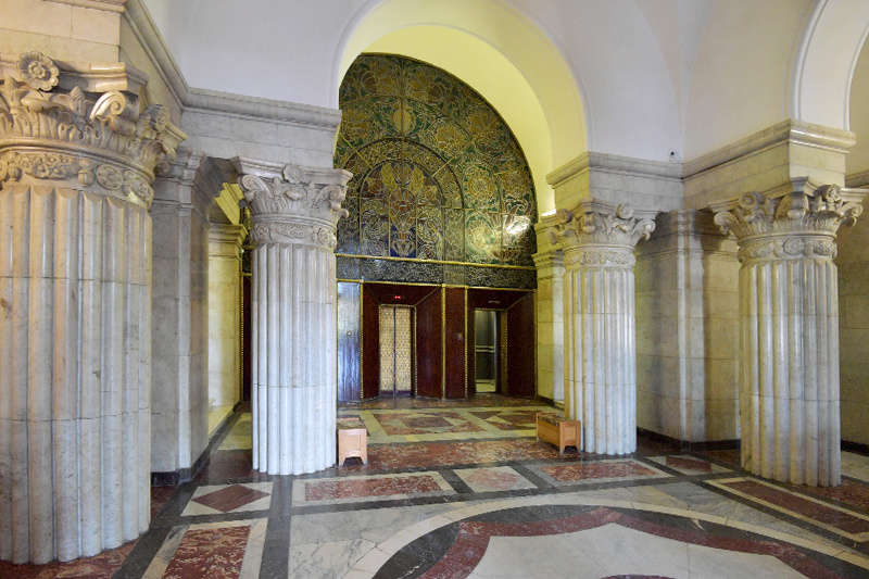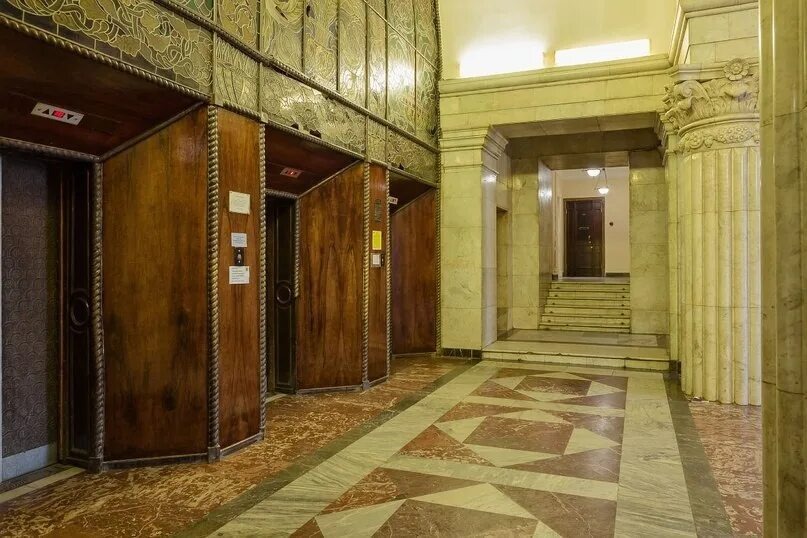 Создавая роскошные холлы, мраморные лестницы, величественные подъезды, просторные вестибюли, террасы и колоннады, архитекторы настолько увлеклись, что в итоге площадь нежилых помещений в здании оказалась больше, чем жилая.