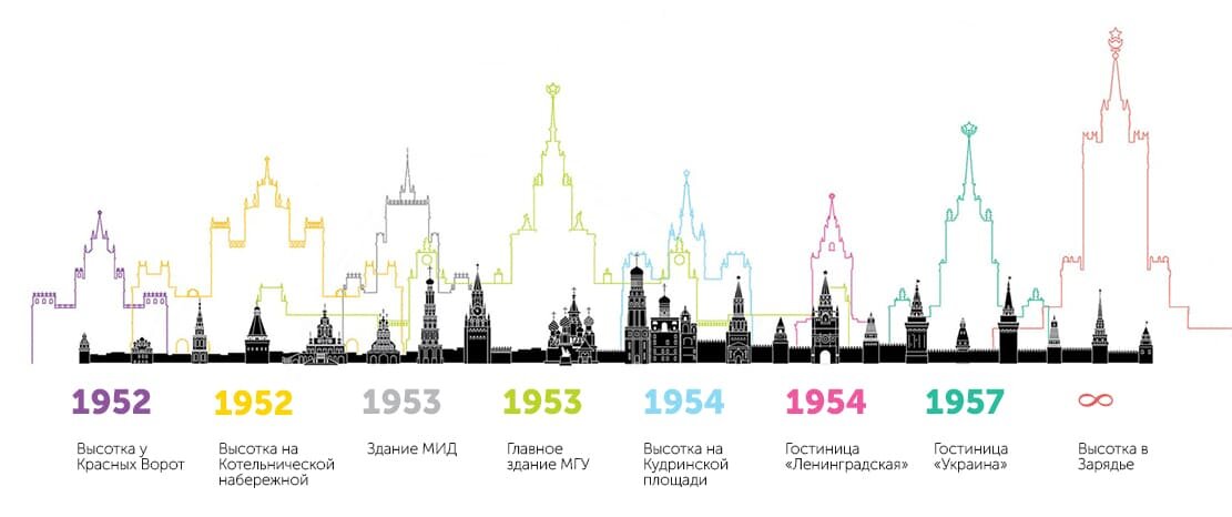 «Семь сестер», возведенные по принципу ярусности, доминируют в ландшафте столицы.